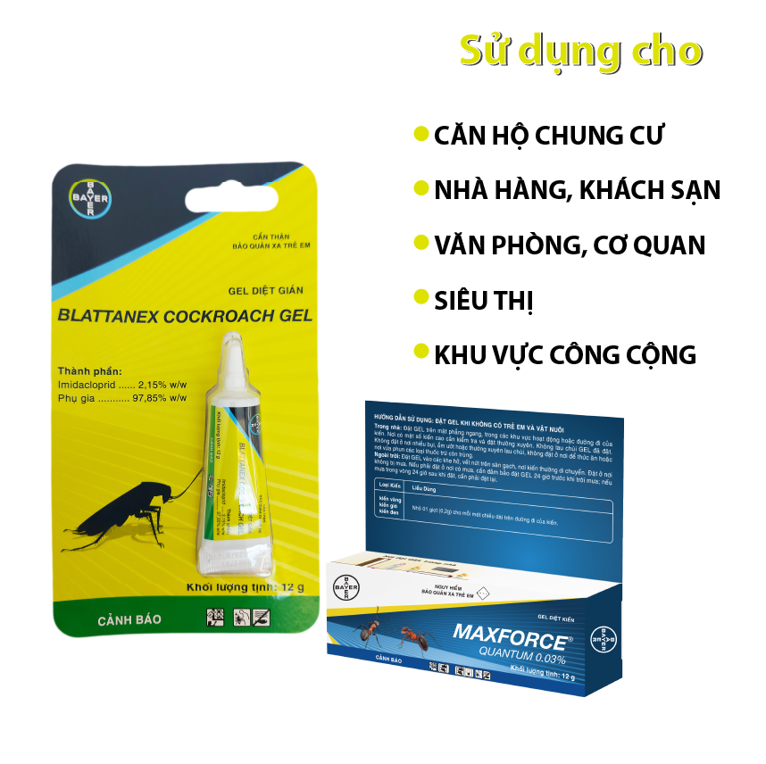 Diệt kiến MAXFORCE QUANTUM + DIỆT GIÁN BALATTANEX COCKROACH GEL được phát triển bởi tập đoàn Bayer Đức, tiêu diệt kiến gián hiệu quả trong gia đình, nhà hàng, văn phòng…Sản phẩm dạng bả gel không mùi, dùng ngay tiện lợi, an toàn sử dụng cho gia đình có trẻ nhỏ hoặc vật nuôi.
