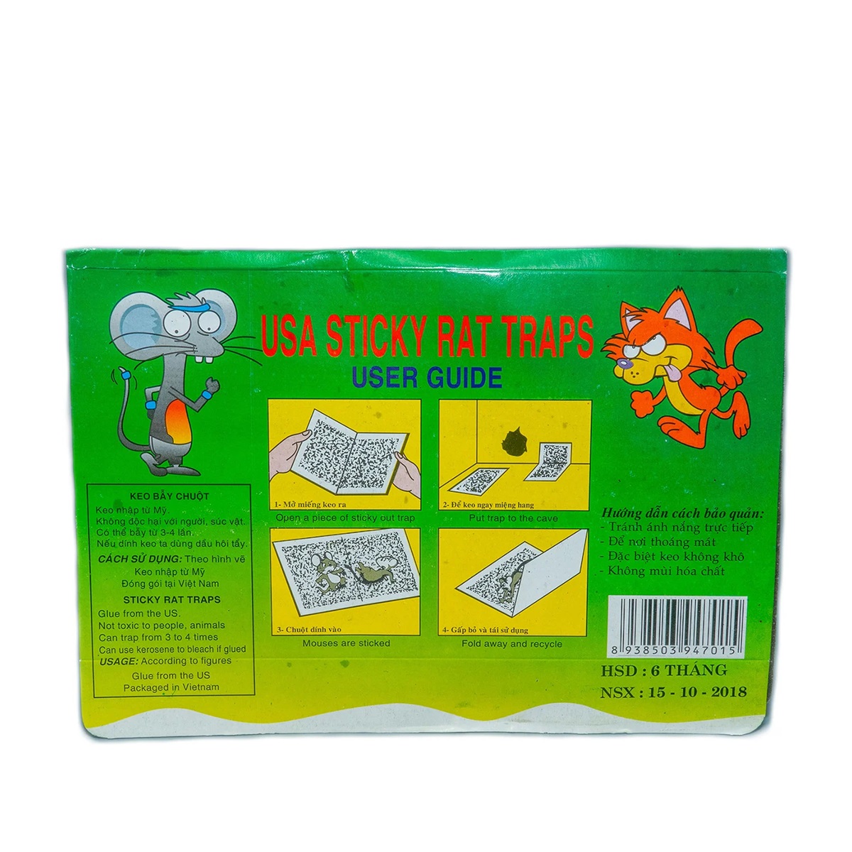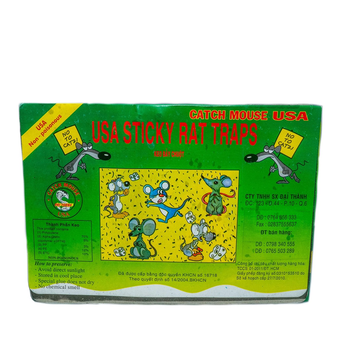 Miếng keo dính chuột siêu dính Sticky Rat Traps xuất xứ từ Hoa Kỳ, sử dụng tiện lợi cho gia đình, nhà hàng, văn phòng. Keo dính chất lượng cao, chuột vào bẫy không thoát ra được. Miếng dính an toàn, không độc hại, bắt được nhiều loại chuột trong nhà: chuột nhắt, chuột nấu, chuột đen…