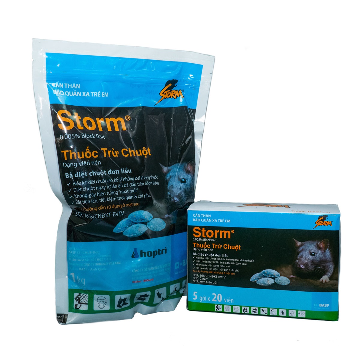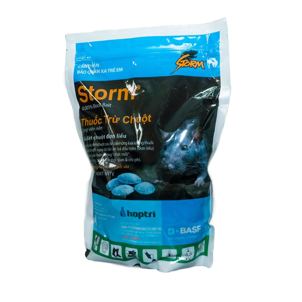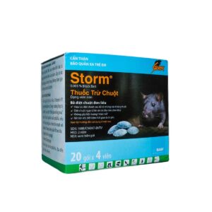 Thuốc diệt chuột Storm 0,005%  – là một sản phẩm của BASF (Đức), sử dụng công nghệ diệt chuột thế hệ mới, diệt chuột hiệu quả, chuột không nhát mồi. Sản phẩm sử dụng hoạt chất Flocoumafen 0,005% có tác dụng diệt trừ tất cả các oại chuột tại nhà ở, khu dân cư, khách sạn, trại chăn nuôi, ngoài đồng…