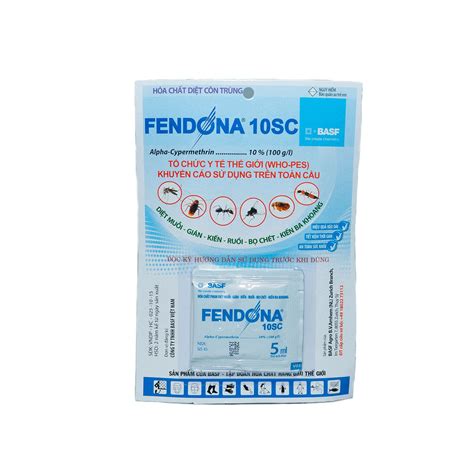 Thuốc diệt côn trùng Fendona 10SC có tác dụng diệt trừ muỗi và các loài côn trùng gây hại như kiến, gián, ruồi, rệp, kiến ba khoang hiệu quả. Sản phẩm được ưa chuộng bởi tính đa dạng, ít mùi, không gây ố vàng bề mặt xử lý thuốc, sử dụng trong gia đình và y tế, hiệu lực kéo dài từ 4 – 6 tháng.