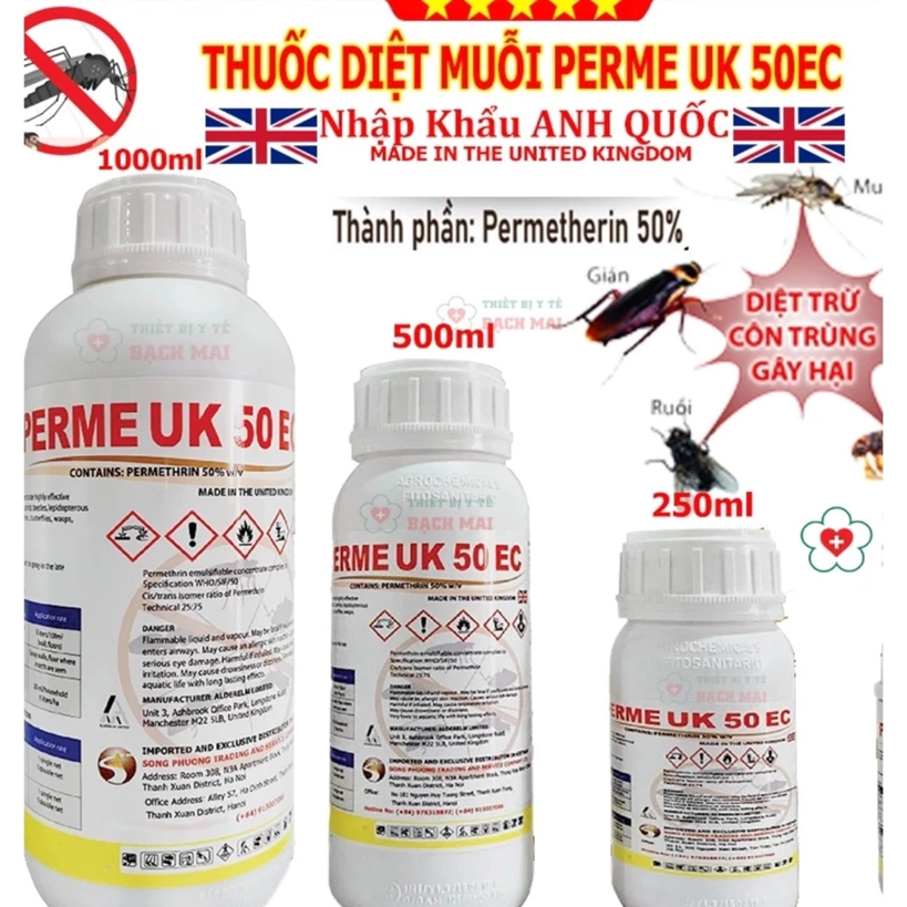 Thuốc diệt muỗi và côn trùng Perme UK 50EC được nhập khẩu trực tiếp từ Anh, là sản phẩm diệt muỗi chất lượng cao với nhiều ưu điểm nổi bật như: Hiệu quả diệt trừ muỗi cao kể cả muỗi kháng thuốc, nhanh chóng, tồn lưu lâu từ 3 – 6 tháng, thuốc phun không mùi khó chịu, đã được kiểm nghiệm an toàn cho người sử dụng. Ngoài ra, sản phẩm còn có tác dụng tiêu diệt cả những loài côn trùng khác như kiến, ruồi, gián…
